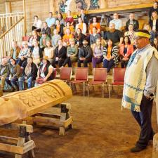 Raphael Silver, the Semá:th First Nation artist behind the carving of the house posts, spoke to the audience about the process of this project and his long connection to the Abbotsford School District.