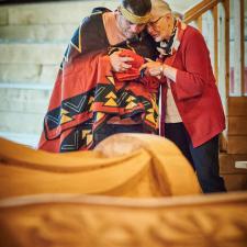 The House Posts are set to be installed at the School Board Office over the summer months. The female and male posts will stand next to each other in the Board room, on either side of the Abbotsford School District logo. The larger house post will be located in the front lobby of the School Board Office to greet everyone who enters the building.