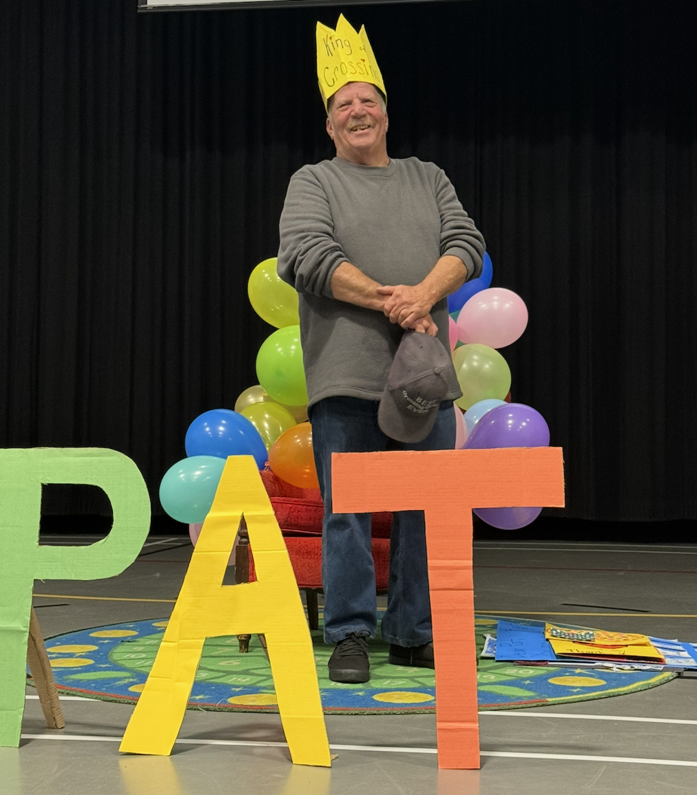 Adding to the joy of the day, every class at the school created handmade cards for Pat, which were presented to him during the assembly. Pat was also surprised with heartfelt video messages from his daughter and granddaughters, congratulating him on this national recognition.