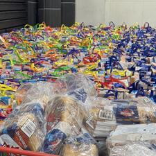 Each pre-registered student received a backpack filled with supplies, along with hampers containing dry goods, fresh fruit and vegetables, bread, and milk. Some students also received coats. School staff across the district identified families and helped them register for the event.