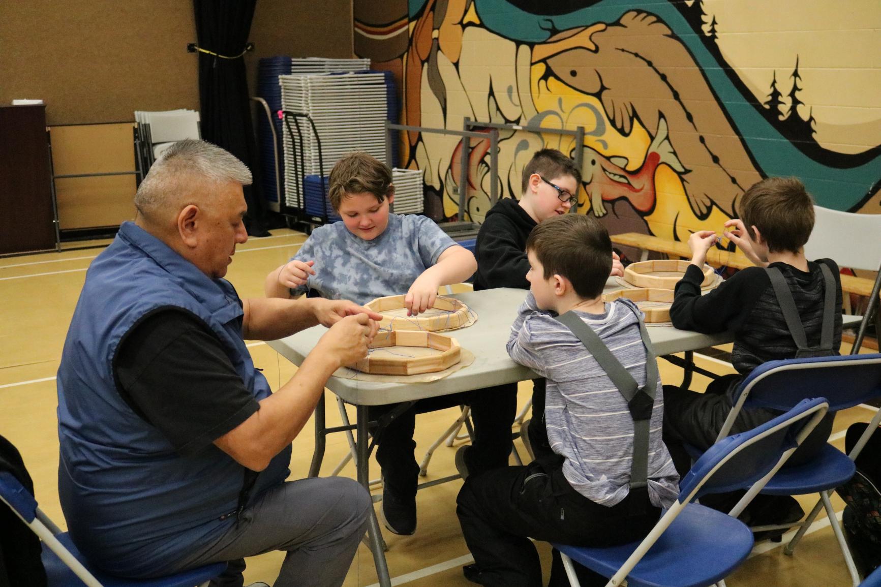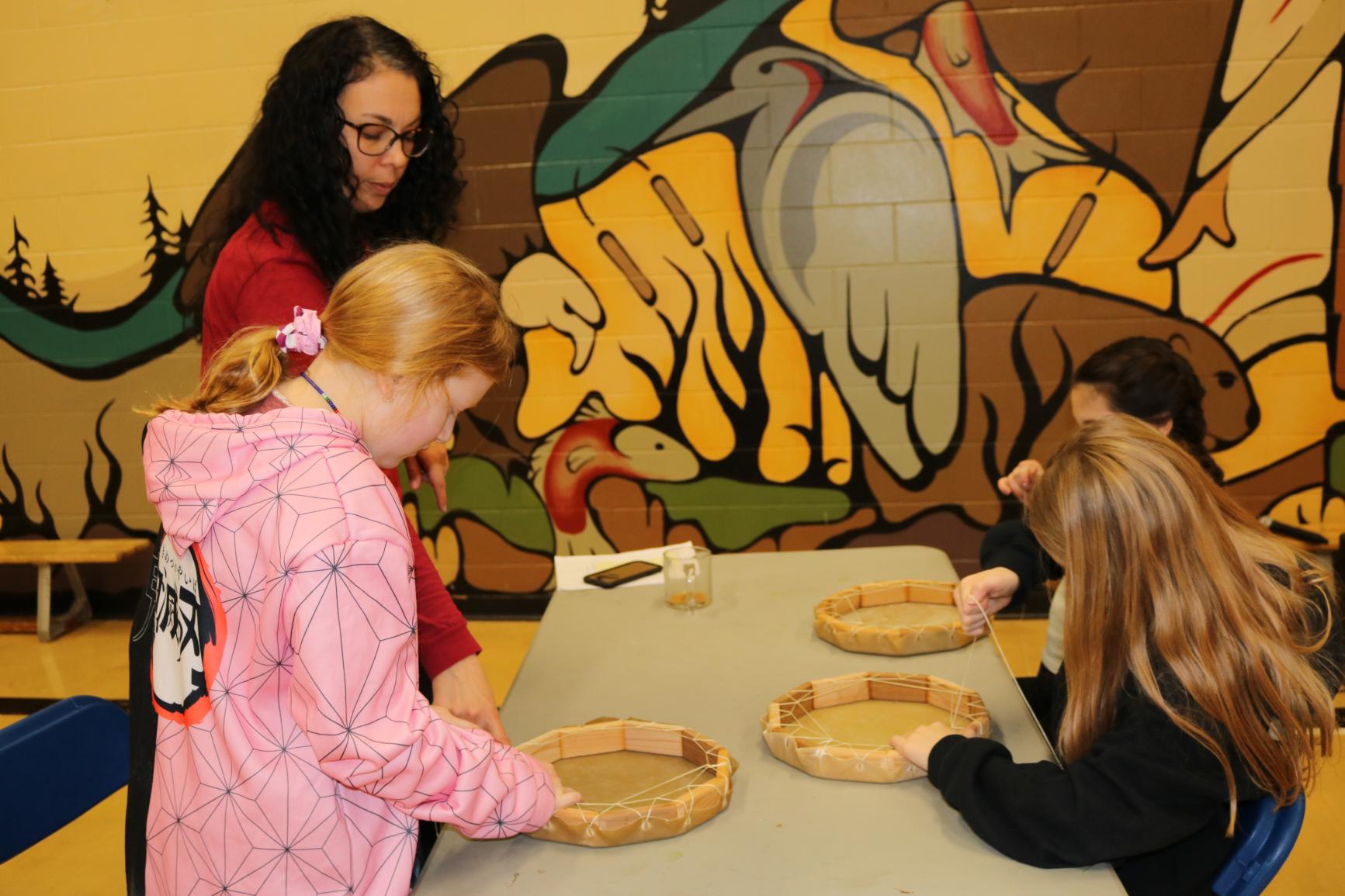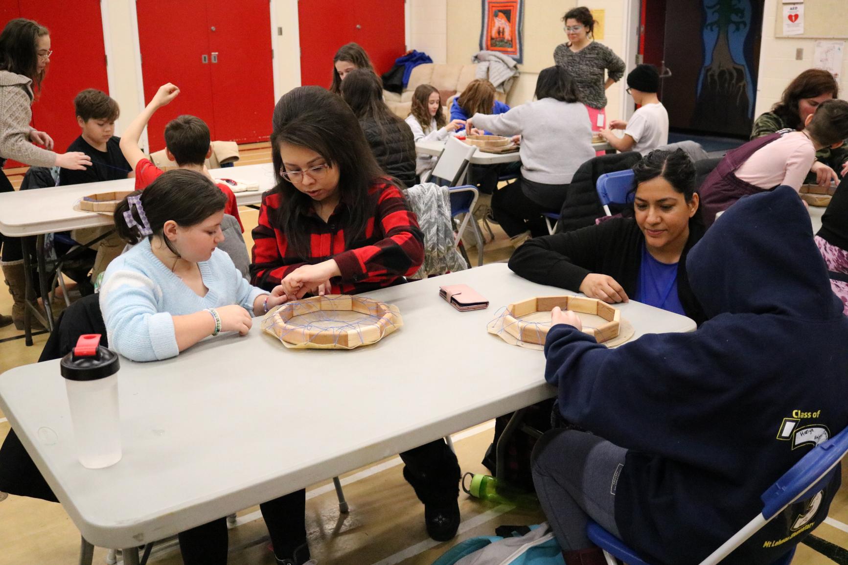 Grade 5 Indigenous students across the district came together for drum making workshops as a way of connecting with other students from their family of schools, as they prepare for their transition to middle school next year.