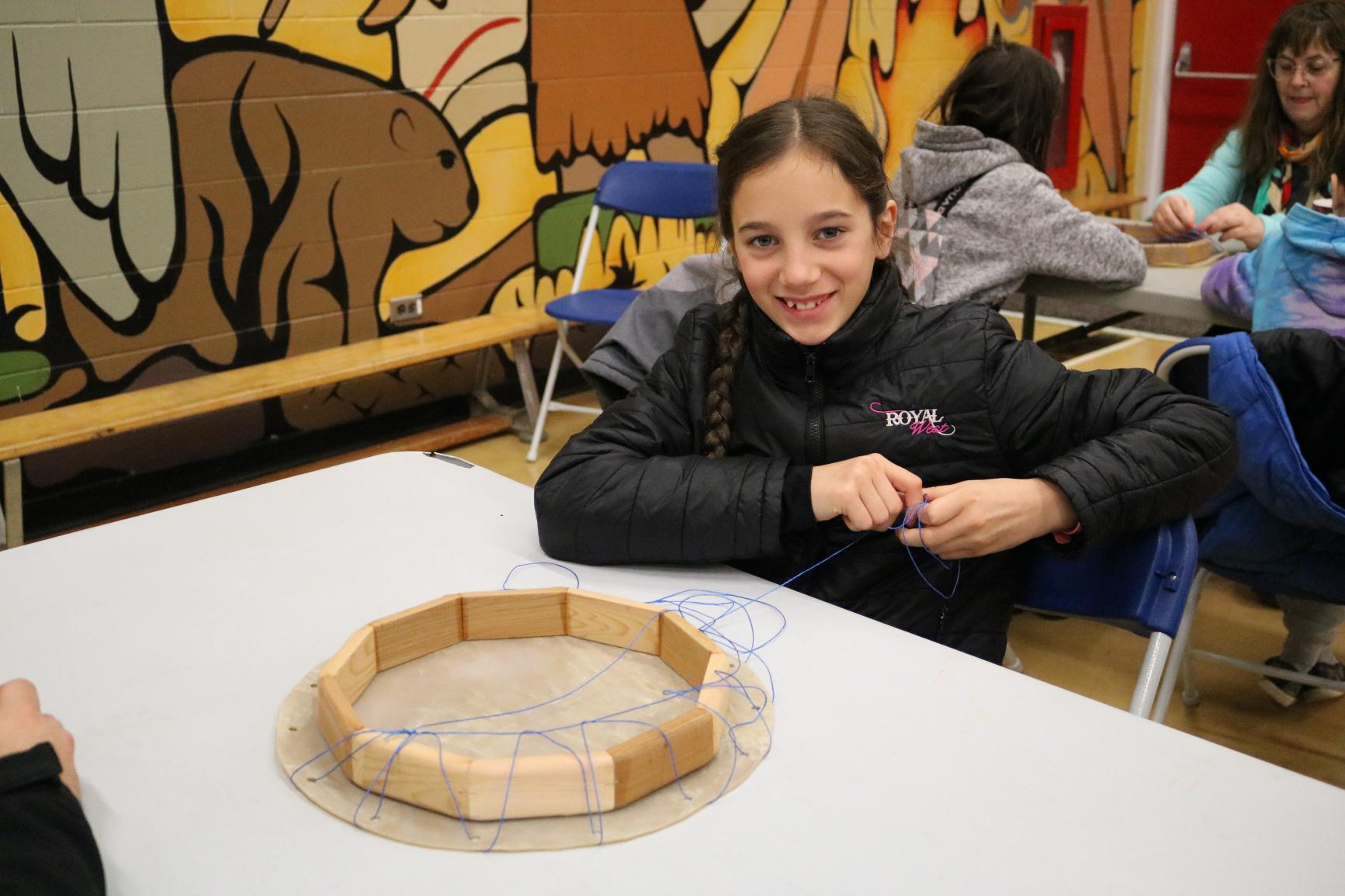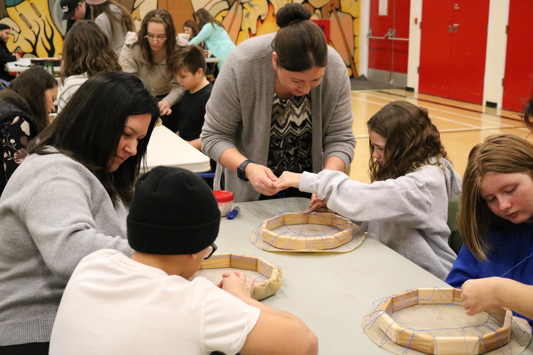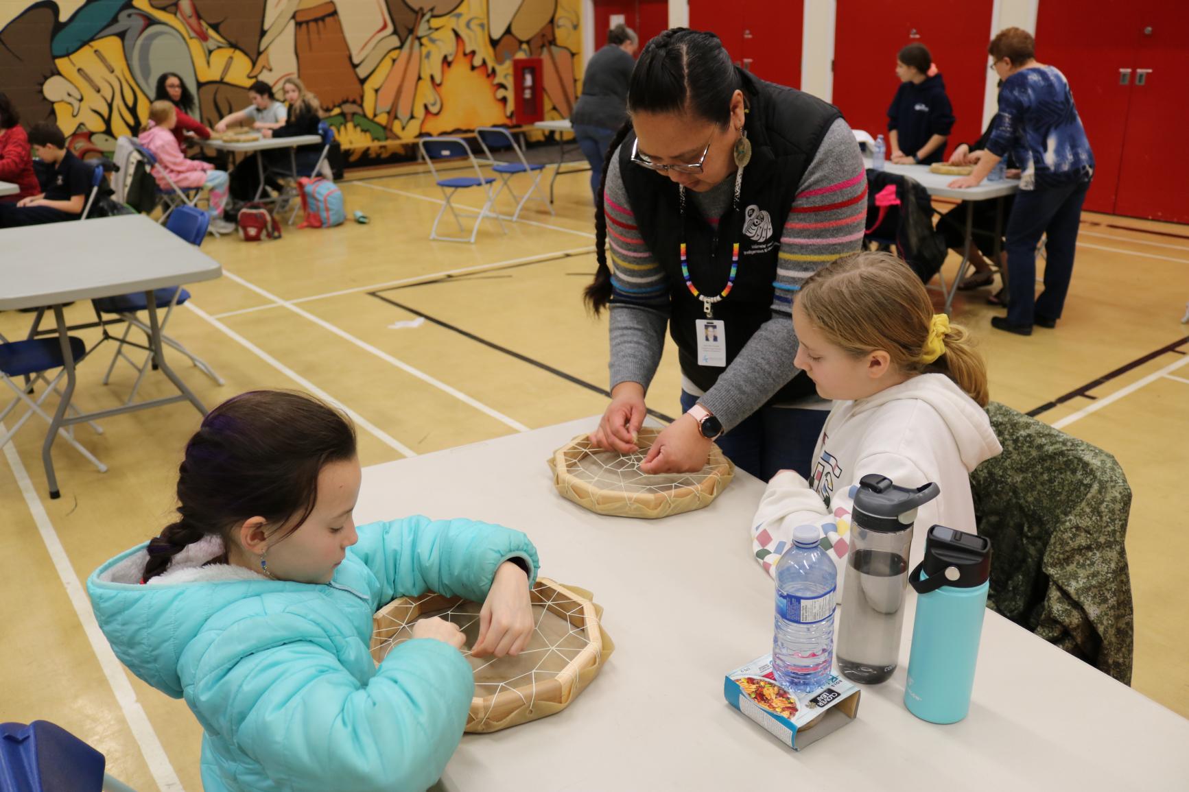 Grade 5 Indigenous students across the district came together for drum making workshops as a way of connecting with other students from their family of schools, as they prepare for their transition to middle school next year.