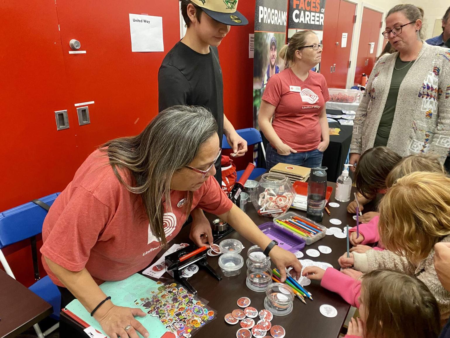 Stó:lō Catering was on hand to provide meals for all in attendance. The clothing room was open for attendees to peruse and take any items that may be needed. Over 150 food hampers were gifted to each family attending to bring back home. Several tables were also set up to provide program information, support, and family resources within the community. There were organizations such as United Way, Métis Families Services, Archway Services, The Foundry, Literacy Matters, First Nations Health Authority, Canada Revenue Agency, Industry Training Authority, Services Canada, the Abbotsford School District Careers and Early Learning Team, the Affordability Fund Manager and Fraser Health Indigenous Team, including an onsite flu clinic for attendees to have convenient access to receive their flu vaccine.