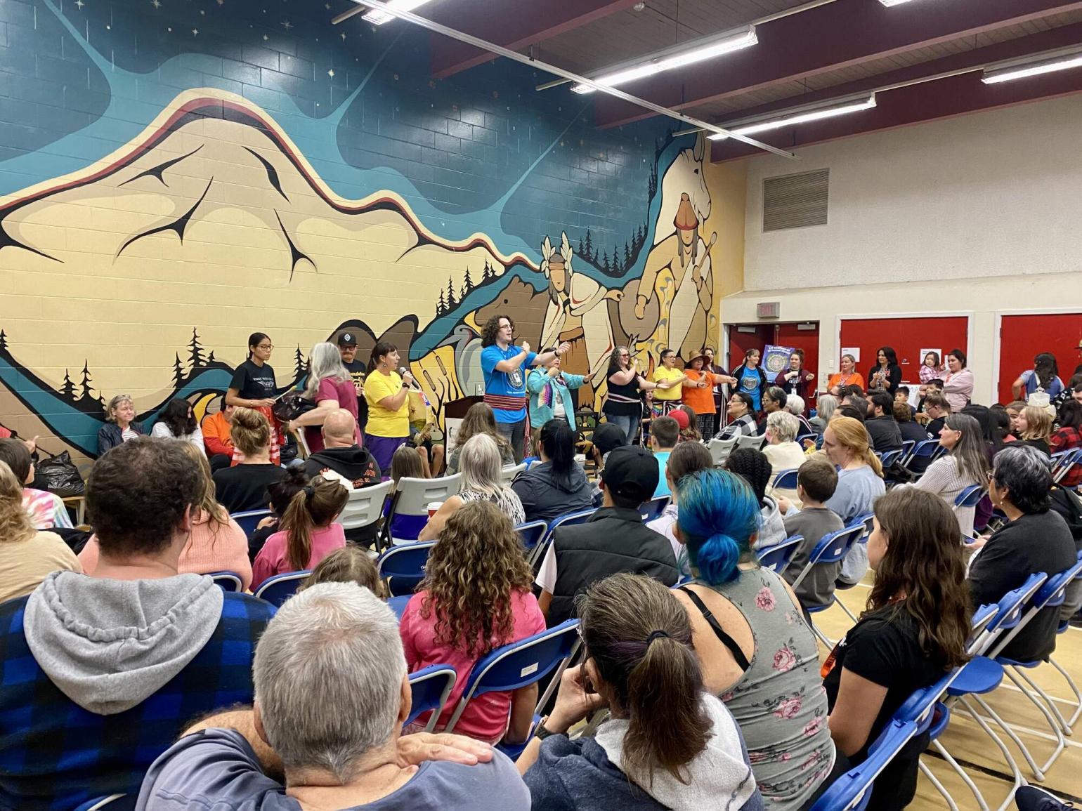 “After years of being on hold, we were able to host our first Family Gathering since 2019 and it was wonderful to see so many friends and families coming together to enjoy each other’s company,” said Allison Gardner, District Vice Principal of Indigenous Education for the Abbotsford School District. “Watching people take care of each other by sharing joy, conversation, and laughter was such a special experience. I saw newborn babies being snuggled and loved, friends laughing together, youth carrying food for Elders, and outside community partnerships connecting and supporting families. All this reminded me that it is a gift to come together, connect, and share with our community.”