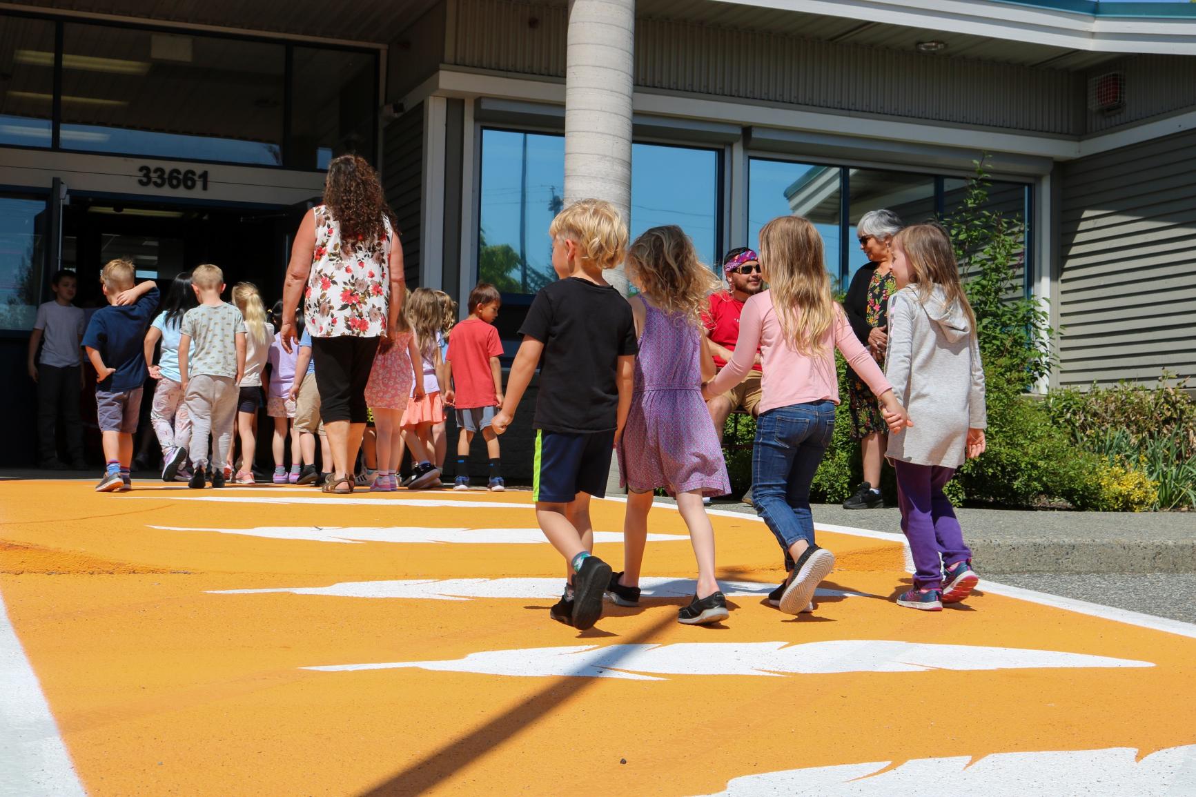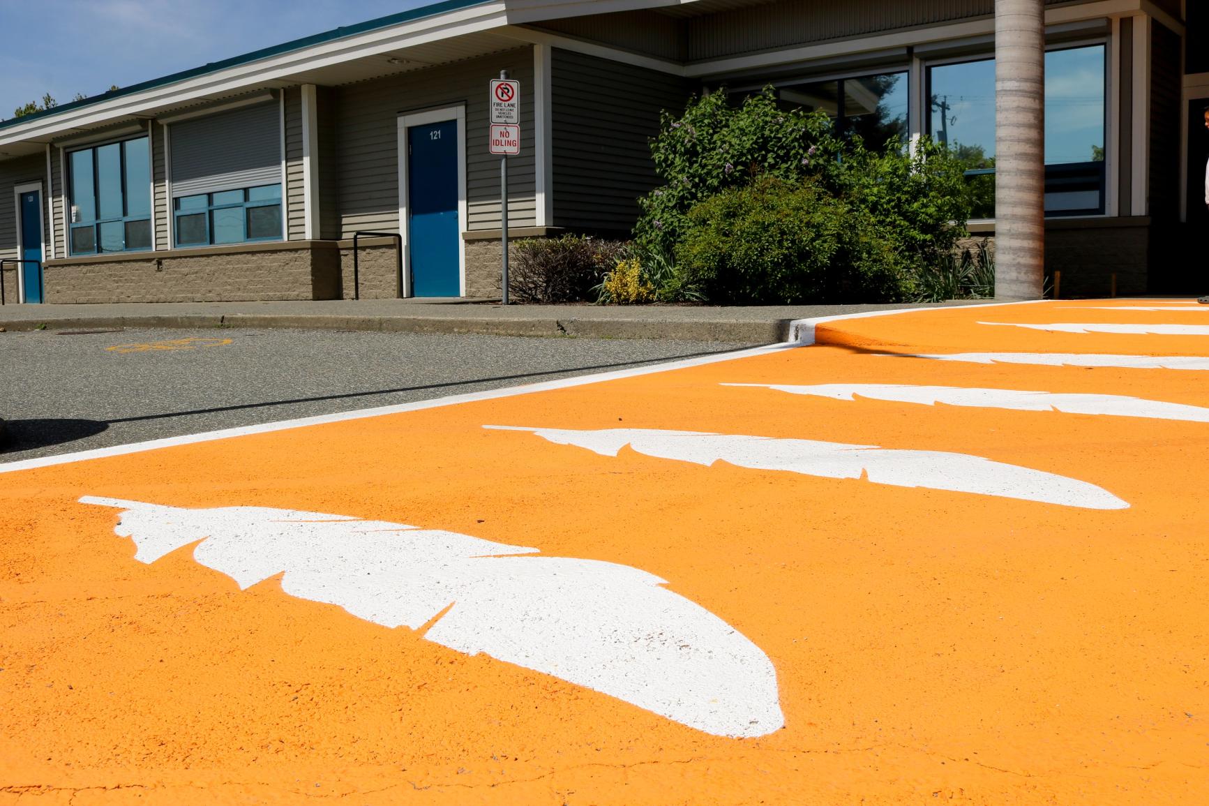 Mathxwí Elementary celebrates orange and eagle feathered crosswalk