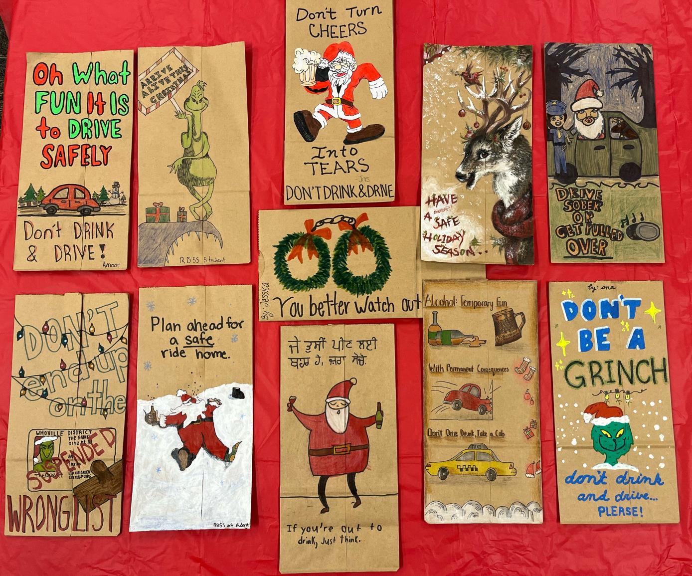 Over 800 Think of Me bags were designed by Abbotsford middle and high school students this year. These brown sleeve bags are adorned with colourful images and powerful messages important to our young people.