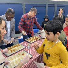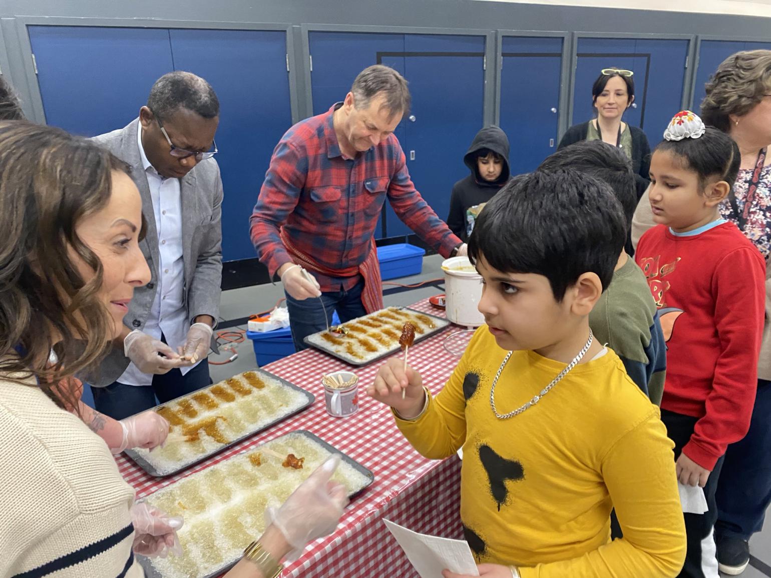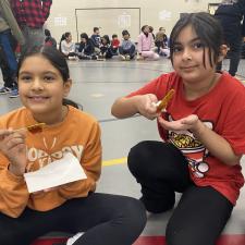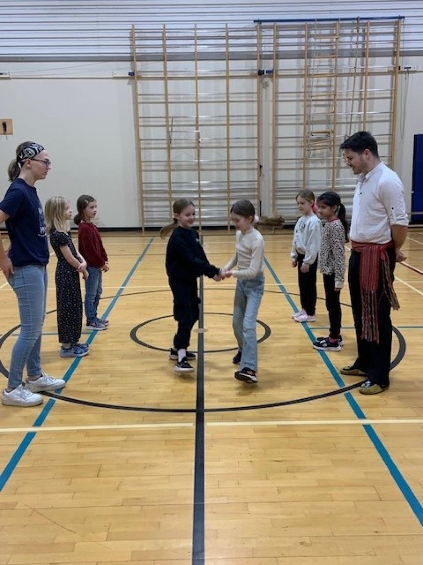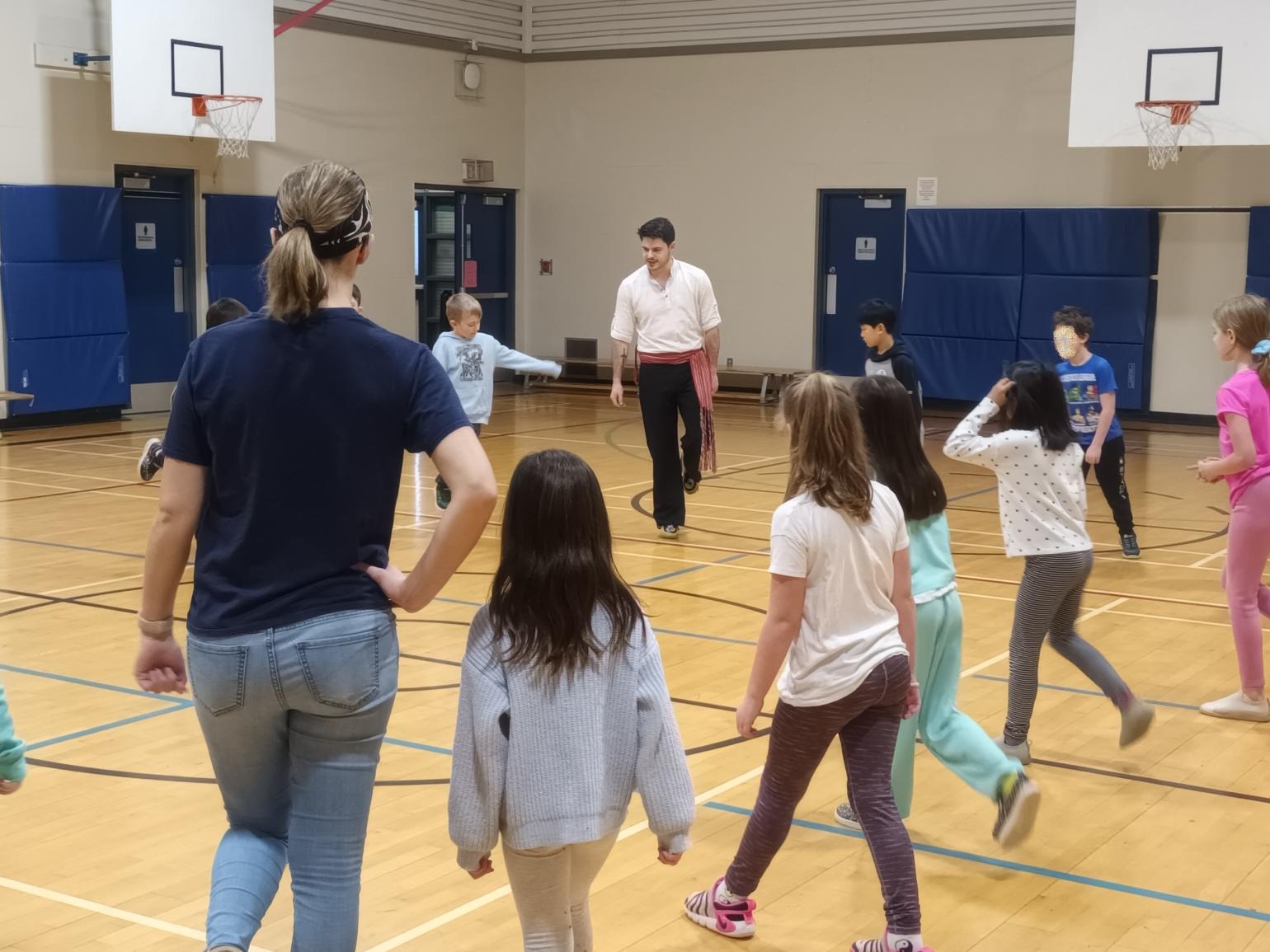 The Carnaval de Québec festivities offered a variety of engaging activities for students and their families, showcasing the vibrant traditions of the iconic winter festival. The program included a French movie night at Centennial Park, a family Carnaval event at Sandy Hill by WJ Mouat Leadership students, and the construction of a giant 'igloo' ice sculpture from milk jugs at Margaret Stenersen. School-wide Carnaval assemblies allowed students to present about the Carnaval, learn French vocabulary, enjoy Maple syrup at the Sugar Shack and perform traditional songs and skits. Fergus Dalton, a Métis jigger, educated students on jigging at various sites, highlighting the links between the French language and First Peoples communities.